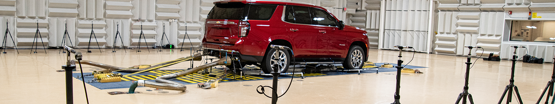 Measuring a vehicle’s interior and exterior noise during operation is far simpler in such a chamber. Eliminating variables such as weather and site variations makes measurements more reproducible, while the stationary vehicle allows more instrumentation.